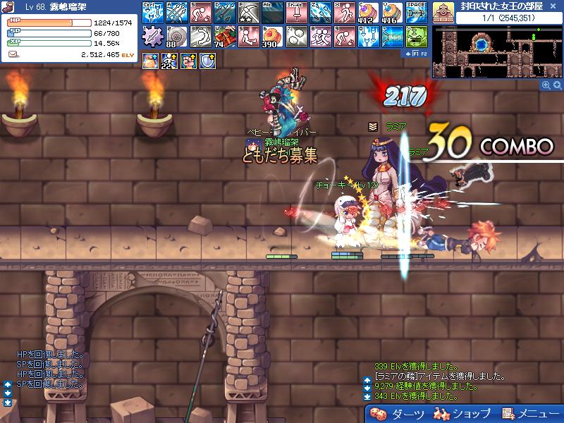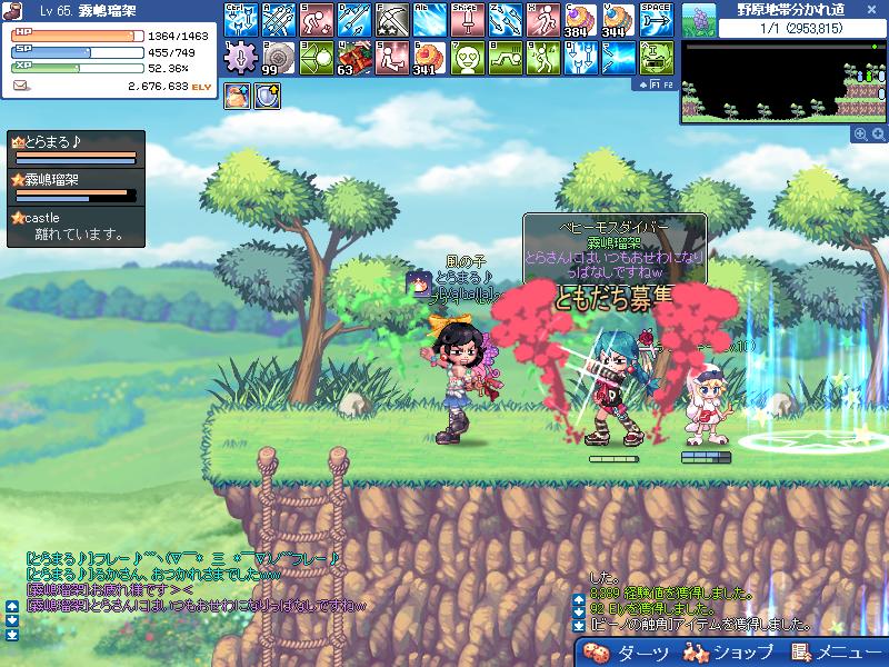 れべるあがれーあがれーってな感じでせっせか倒してました。